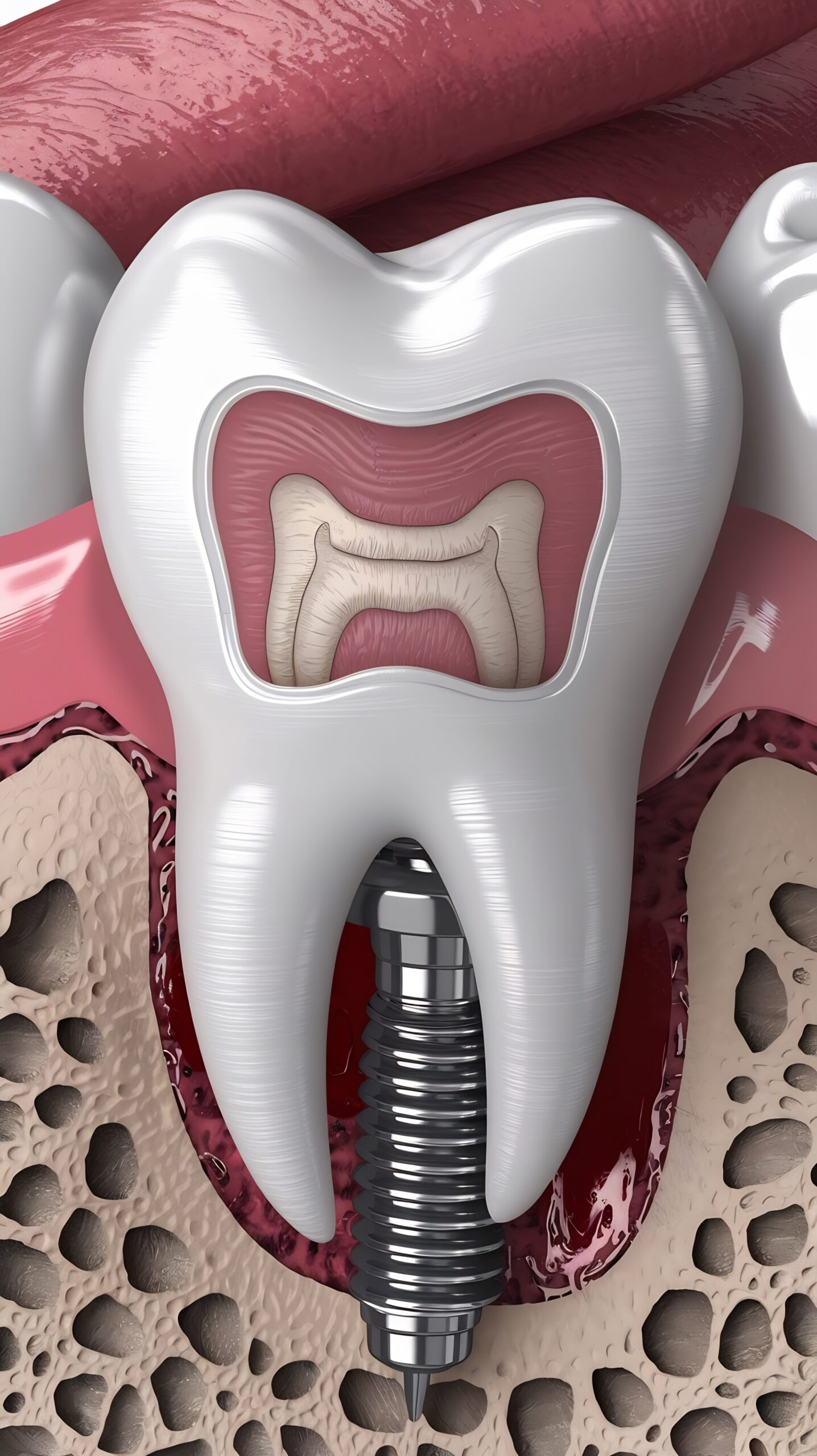 Over a few months, the implant fuses with the bone for strong, stable support.